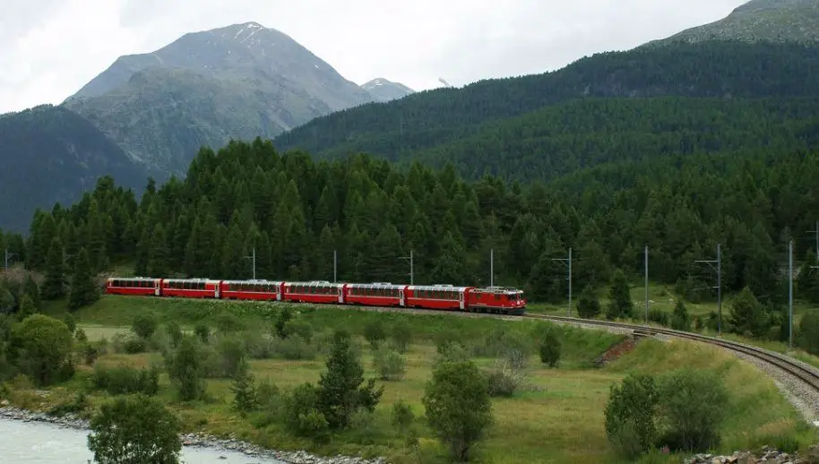 Glacier Express Switzerland passes through 91 tunnels and over 291 bridges while connecting Zermatt to St. Moritz and it is the most exciting thing about this train. This renowned train ride in the Swiss Alps provided the most luxurious experience to the passengers. While taking you from Zermatt to St.Moritz it stops at a few other stations like Andermatt and Chur. This is the most picturesque train in Switzerland but itâs not everybodyâs cup of tea to take a tortoise-like slow ride of about 8 hours.