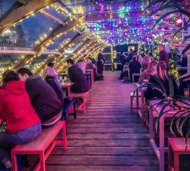 Aviary is a gorgeous rooftop igloo restaurant in London with transparent domes. It is possibly the best rooftop igloo in London from where guests can have the iconic view of London’s skyline. The entire place is spread in an enormous space covering 2 terraces. There are a total of 8 Igloos in Aviary and each one of them can accommodate 4 to 6 people at a time. Moreover, for large gatherings the outdoor space is perfect. Also, contact the administration and pre-book your seats for all large gatherings of more than 6 people.Â