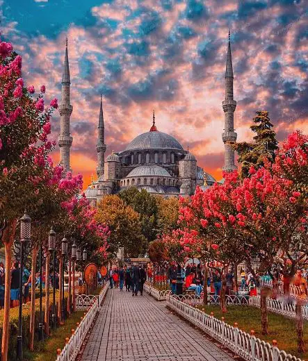 Sultan Ahmet Cami in Istanbul is an imperial mosque built-in 16h century. The monument is already a famous tourist destination in Istanbul but the charming walkways that take you to the main entrance of the mosque are even more charming. The boulevard is packed with skyscraping pine trees and colorful flowers. There are multiple locations on the thoroughfare where you can click lovely pictures of yourself. Either stand in front of the Blue Mosque or just sit on the bench on the boulevard, every location in Sultan Ahmet Cami is perfect to click panoramic pictures.Â