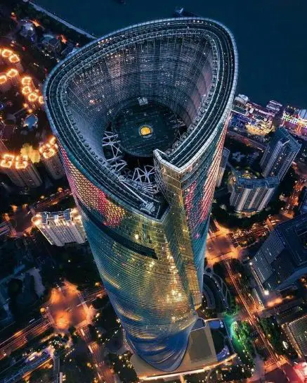It is another towering financial tower of China located in the Guangzhou province in Tianhe District. The construction of this 11-floor multi-story building started in September 2009 and got completed in October 2016. This building comprises an enormous shopping mall, extremely lavish apartments, spacious offices, an enormous hotel on top 16 floors, and a podium with a glass roof. Each one of these spaces is separated with a mechanical floor in between them. In total there are 355 duplex apartments and 251 hotel rooms entirely owned by Rosewood Hotels & Resorts.