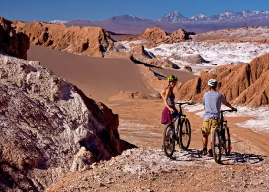 I may warn already, this adventure is not everyoneâs cup of tea. Therefore, if you donât enjoy extra dangerous tours, stay away from this one! As stated, the Atacama Desert is the driest place to such an extent that they compare this land to Mars. In fact, NASAâs scientists duplicated their tests for Mars at the Atacama desert. It may sound super dangerous but cycling amidst the majestic red rock formations, narrow gorges, and 150m-high sand dunes of Valle de la Muerte and Valle de la Luna in the Atacama are the best sites to capture while enjoying this popular outdoor activity in Chile.Â
