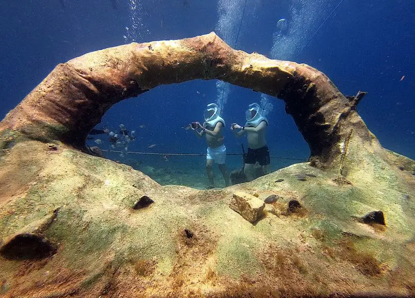 Sea trekking is another way of experiencing the Cozumel underwater world and one of the top things to do in Cozumel. So why not try sea trekking with a helmet on your head? Sea trekking is for those who won’t have a problem breathing and walking in deep waters. The guides will tie up a fully enclosed helmet on your head that falls over your shoulders. Inside the helmet, the steady stream of air will help you to breathe comfortably under the water. The free walk on the ocean floor at around 20 – 25 feet will definitely fill your heart with thrill and adventure at the same time.