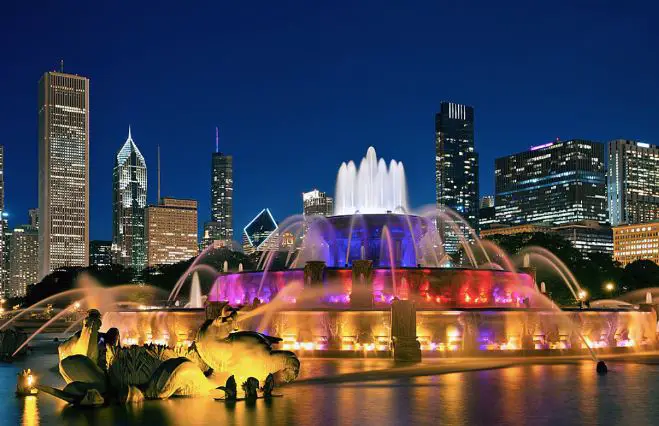 Buckingham Fountain is the most famous tourist destination in Chicago. This beautiful fountain is located in Grant Park and was designed by Architect Edward H. Bennettā. The park was first opened in 1927 and until now there is no large fountain other than the Buckingham Fountain in Chicago. In the evening the park gets packed with thousands of tourists who came to Chicago to witness the alluring beauty of this fountain.Ā