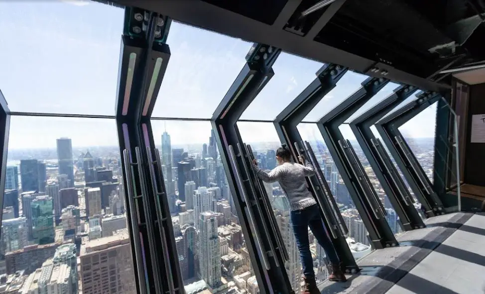 John Hancock Observatory is a prominent 100 story building in downtown Chicago. This building features an Observation deck on the 94th floor of the John Hancock building named ā360 Chicagoā. The skyline view of the city from the 94th floor looks impressive. If you are in Chicago looking for something extraordinary then take a visit to 360 Chicago. A tilted glass dome located at 1000 ft above the ground is worth experiencing in Chicago.