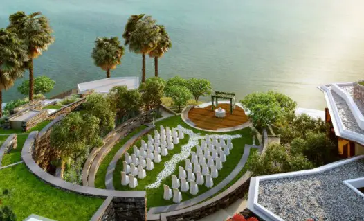 The view of, bride & groom embracing each other in front of a soothing ocean wearing nice bridal dresses is ethereal. St. Regis Bali Resort gives you the exact opportunity with more contrasting features. Your nuptial ceremony lights up with the natural color scheme of this famous venue in Bali for weddings. Whereas, a large seating capacity for 200 guests makes the entire ceremony immensely epic. In addition, Marriott resort’s signature services create a grand memorable event at this venue you can hardly forget.
