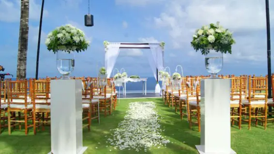 It is an elegant Beach House that hosts private wedding parties. Legian Seminyak is renowned for its traditional Balinese Gamelan orchestra, & award-winning culinary offerings. Such a wonderful service guarantees that your event will be seamlessly organized and truly special. Hence, if you want to organize a nice, small & chic beach wedding in Bali then Legian Seminyak is your savior!