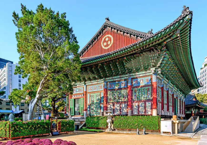 For Zen Buddhism, Jogyesa Temple is the main temple in Korea. This historical religious monument in South Korea holds a very important place in the religious identity of the city and the nation itself. This temple invokes peace and spirituality almost instantly surrounded by mature trees. The main building is said to be close to 500 years old. The temple has been given the status of a national treasure because of the Baeksong tree that surrounds it. The temple holds rituals and ceremonies periodically and is an active religious place. It is particularly beautiful in the evening when it is illuminated by lamps by the monks. Outside, there are shops selling Buddhist trinkets.