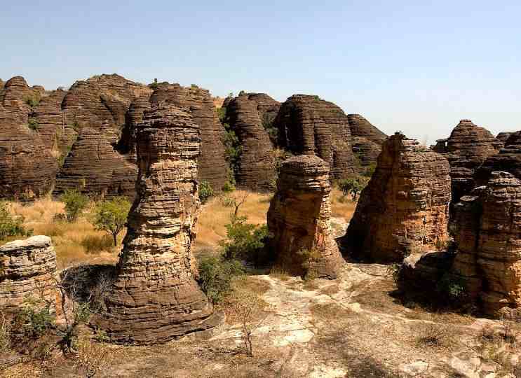The bulbous rock formations of the Bungle Bungles draw thousands of tourists every year in Western Australia. Burkina is almost entirely unheard of, yet it has an almost geologically identical feature. it is one of the most visited monuments in Burkina Faso. So the magnificent, all the better for their desolation, hauntingly beautiful Domes de Fabedougou rest undisturbed, bar local cows and herders. they are there for the climbing, better still and sit side by side like a series of enormous grey igloos, there are some easy ascents up the cracked sides of the domes.