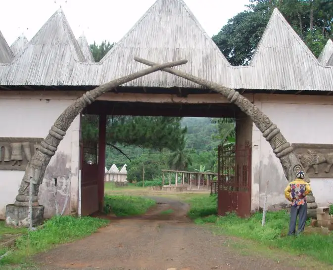 The compound is centered on a hugely impressive bamboo building, approached via a ceremonial gate, with figures from secret societies its conical thatched roof supported by wooden pillars carved, dancers, musicians, even the World Cup-winning Cameroon football team and former chiefs. The interior of this old monument in Cameroon is out of bounds, but the visitor center to the left offers an informative tour.