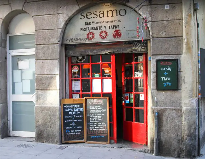 This one of the popular vegan restaurants in Barcelona is also a lively drink bar where they serve a range of good wines and snacks. At the back, there’s a cozy little room that’s ideal for quiet, romantic dinners. They serve international specialties with a bias toward Italian food that brightens up the concept of vegetarian cuisine, though there aren’t many options for vegans.