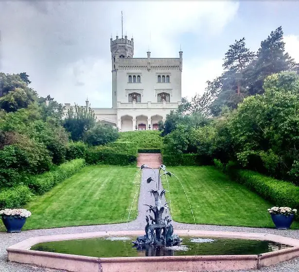 The castle is located on a peninsula and tourists can access this magical castle through a boat or antique wooden bridge.Â