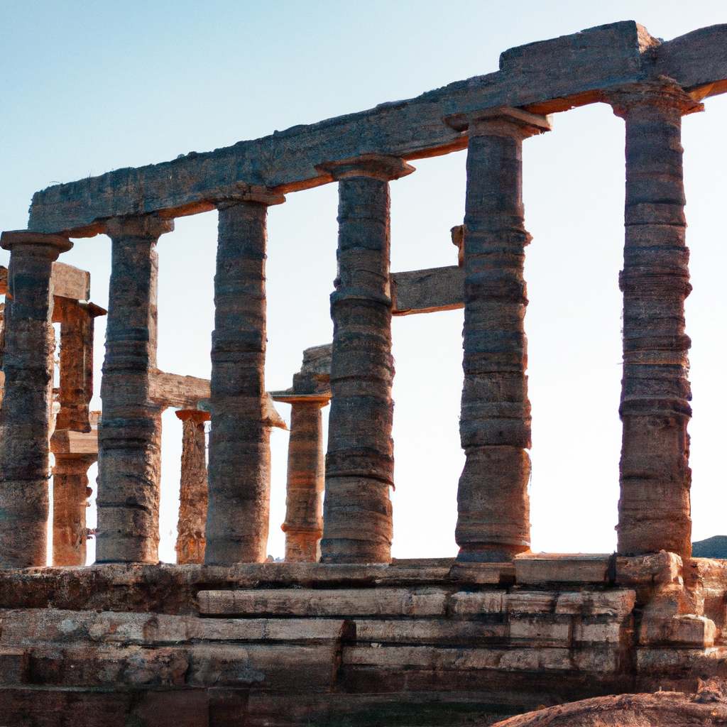 The Temple of Poseidon at Cape Sounion, located on the southern tip of the Attica peninsula in Greece, is one of the most iconic monuments of ancient Greece. Built in the 5th century BCE, the temple is perched on a rocky cliff overlooking the Aegean Sea, and is one of the best-preserved monuments of its kind. It was constructed by the famous architect, Ictinus, to honor Poseidon, the god of the sea, and was a popular pilgrimage spot for Ancient Greeks.