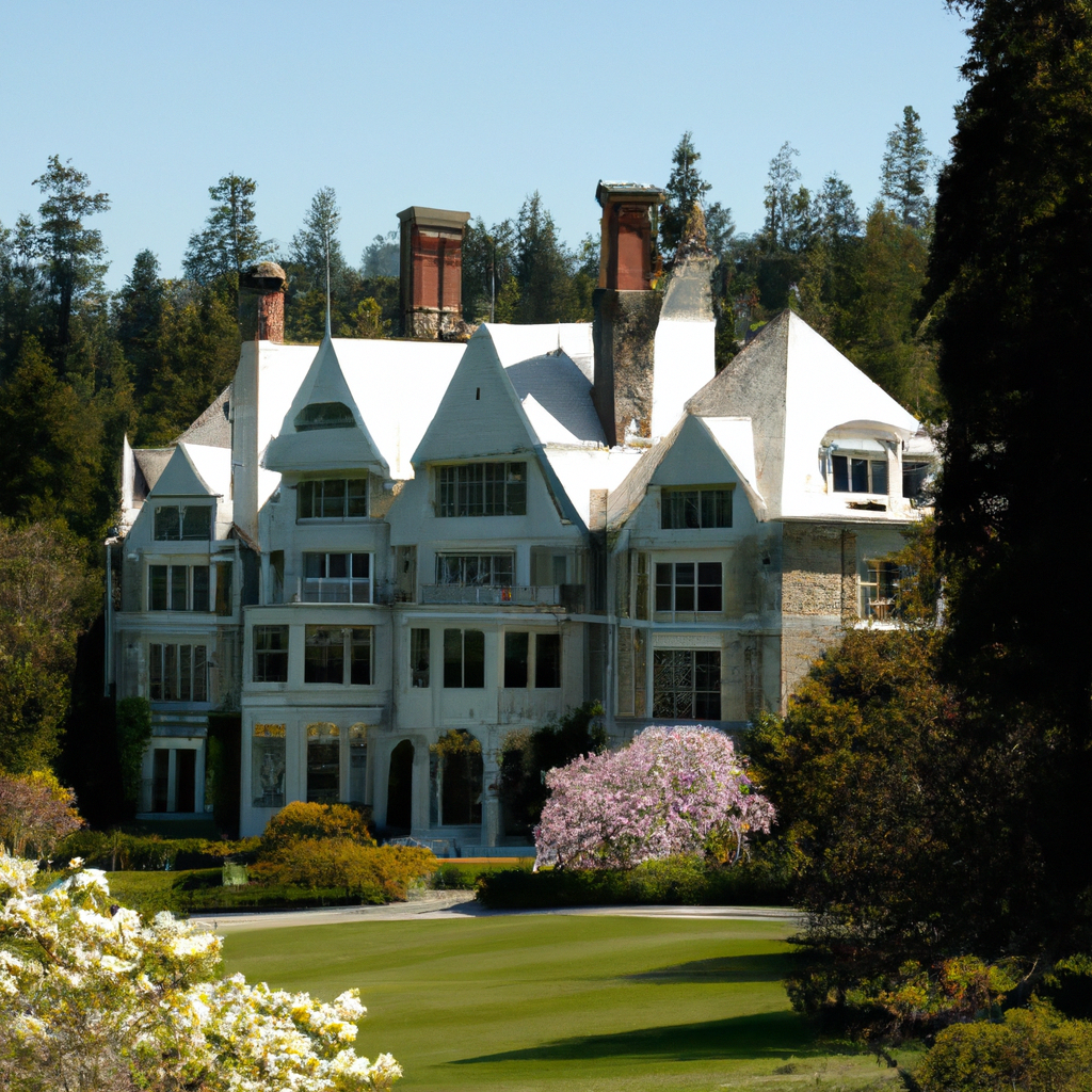 The grounds of the estate include formal gardens, wooded trails, lakes, and the Italian gardens, which feature numerous classical sculptures. The interiors are mostly Georgian Revival, and the main building is a French Normandy style. The estate housed gardens, greenhouses, lighted tennis courts, an outdoor fire pit, rustic cabins, stables, and an Italian fountain. It is also the site of Hatley Castle, the former residence of the Dunsmuirs, and the five stone Gate Houses.