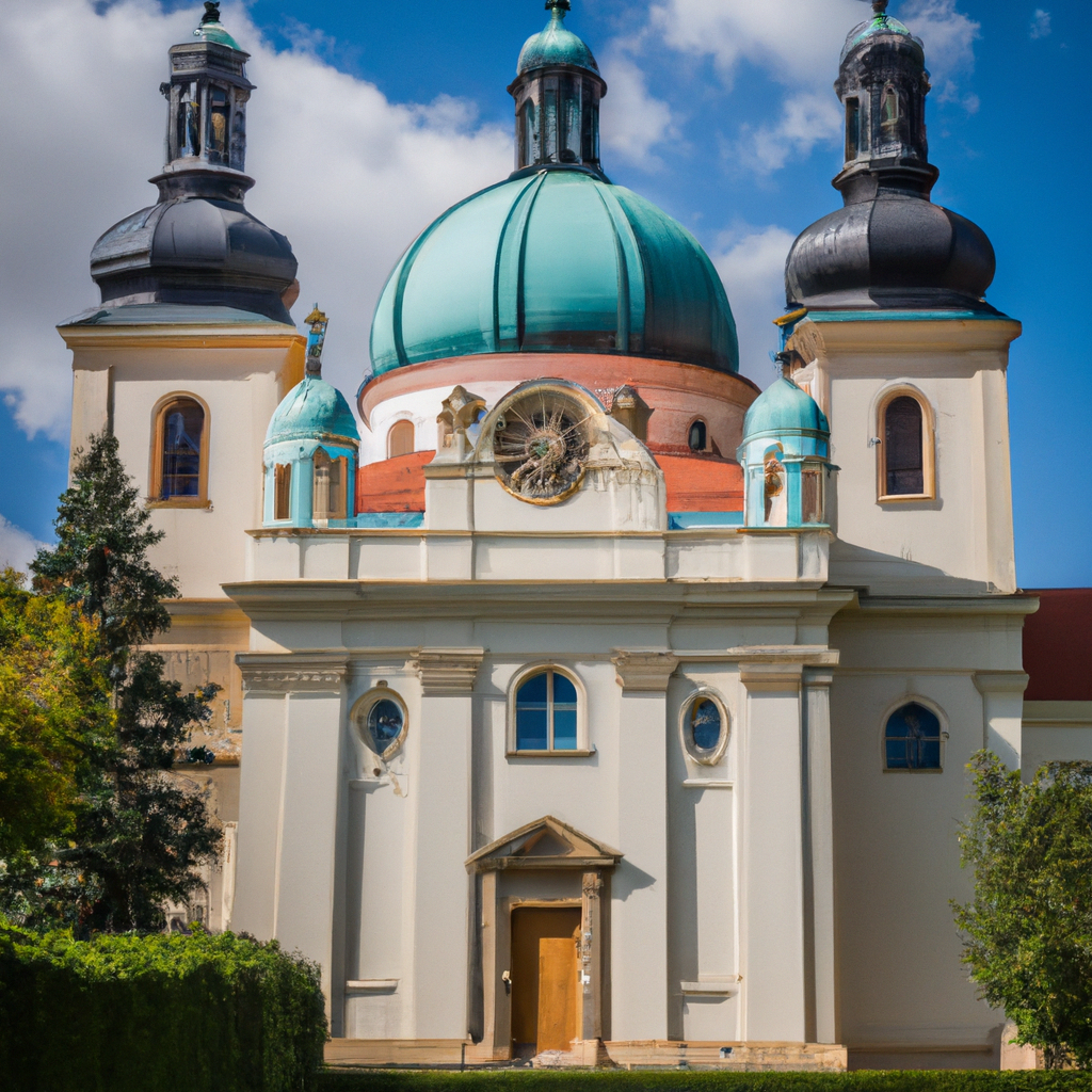 The basilica is a brick building with two towers and a dome, with four chapels attached to it. The exterior is decorated with Baroque sculptures, and the interior is full of frescoes and works of art. Various relics and objects belonging to the Waldstein family are kept in the crypt below the basilica.