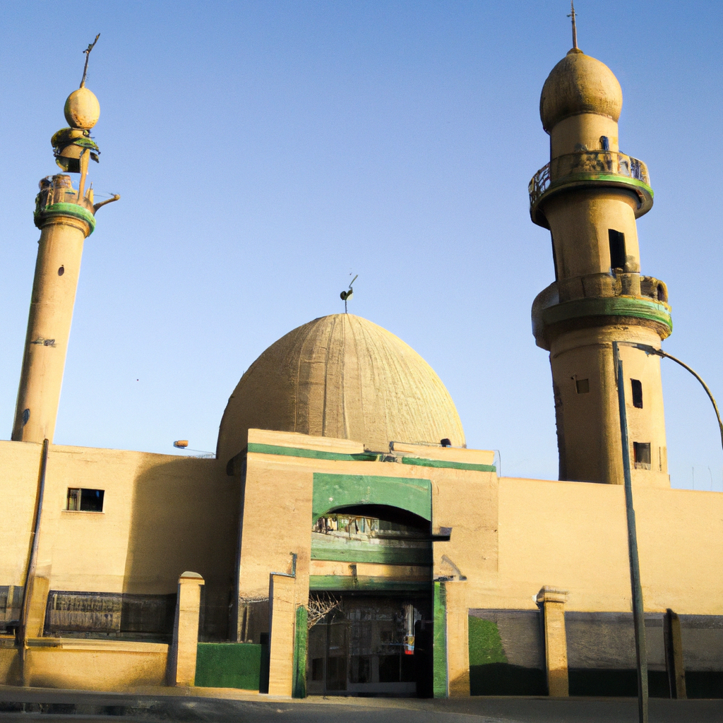 Al-Jazairi Mosque is a prominent religious site located in Karbala, Iraq. It is known for its historical and religious significance, as it holds a great deal of historical and religious significance to Shi’a Muslims. The building is made of white marble and is also known as Al-Jaziya Mosque or the Mosque of the Algerians. The mosque was built in 837 AH (1433 CE) by Amir Naqi Jazairi as a place for his tribe members to pray. It was also used as a school for Shi'a studies by famous Islamic scholars such as Jinn al-Din, Ibn Najjar, Ibn al-Hasan, and Muzarnaja. The mosque contains a large dome and a large prayer hall that can accommodate around 3000 people. The mosque is open to visitors and non-Muslims are allowed to enter, although they are requested to show respect for the religious rituals going on inside. The mosque is open 24 hours a day and entry is free. The closest major airport to Karbala is the Baghdad International Airport, located around 80 kilometers to the east. The airport offers regular flights to major cities in the Middle East. From the airport, it is possible to get a taxi or rent a car to get to the mosque. Public transportation is also available to Karbala from Baghdad, Nassiriya, Najaf, and other cities in the region. There are also several bus services that offer regular trips to Karbala. It is highly recommended to book tickets in advance as seats can get filled quickly, especially during religious festivals. beautiful masjid.