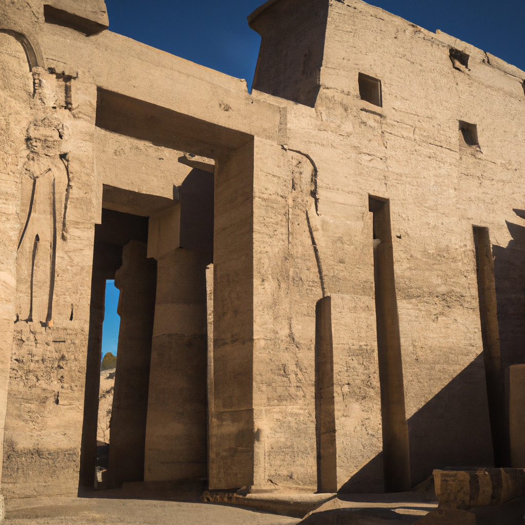 , The Temple of Amun at Medinet Habu South in Egypt is an ancient Egyptian temple dedicated to the worship of Amun, the supreme god of the Egyptian pantheon. Built during the reign of Ramesses III (reigned 1186-1155 BCE), it is considered one of the best preserved temples in Egypt and is one of the largest structures built during the 19th Ancient Egyptian dynasty. It features two hypostyle halls, one of which is 110 meters long, and a well-preserved mud brick wall with a display of relief art depicting battle scenes, religious ceremonies and the relationship between the royal family and the gods. The temple was damaged during the 18th century due to an earthquake, but the inner core still stands and provides insight into the culture and beliefs of Ancient Egypt. It is one of the best temple in Egypt which you must visit.