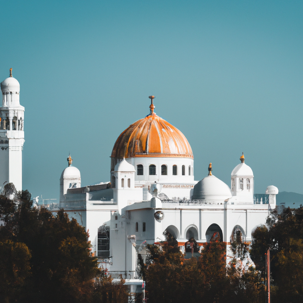The Al Ansab West North Mosque is located in the Al Ansab region of Muscat, Oman. The architectural style of the mosque reflects traditional architecture for the region but with a modern touch. The mosque is characterized by two major minarets positioned at the back of the mosque. The minarets stand out from the the main building, both the two minarets are coloured in white and are soaring up to 19m. There is a large dome covering in white and gold colour at the center of the mosque. It is surrounded by four smaller domes, completing the main structure. The façade of the mosque is built with decorated in geometric pattern and the outline of blue tile. It is worth noticing the boundary wall, surrounding the whole area with its impressive massive pillars and verses of Quran displayed in golden colour. As an element of modernity, four sets of stairs allow easy access to the mosque from the outside. Other features are the interior decoration that draws inspiration from traditional Islamic patterns, with a mix of painting and precious stones, which transform this space into an enchanting one. This is why, it is considered one of the most beautiful mosque in the world.